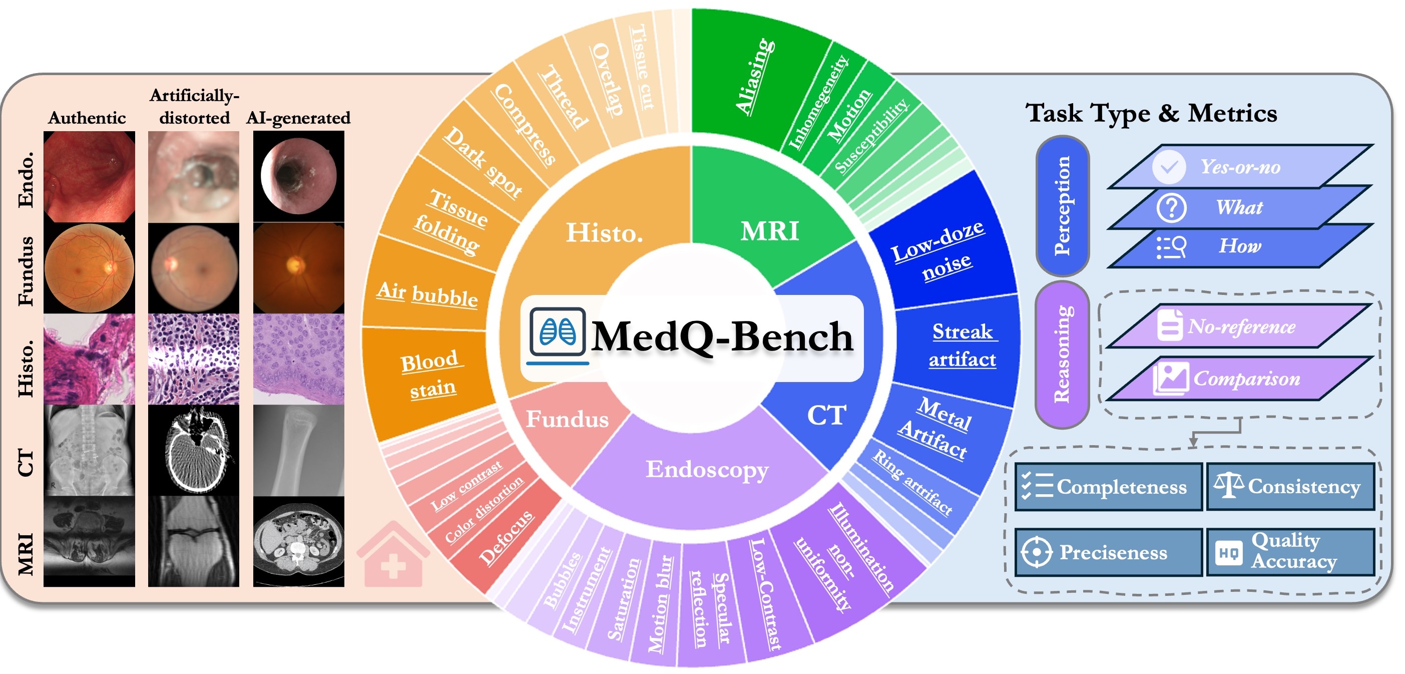 MedQ-Bench: Evaluating and Exploring Medical Image Quality Assessment Abilities in MLLMs Jiyao Liu, Jinjie Wei, Wanying Qu, Chenglong Ma, Junzhi Ning, Yunheng Li, Ying Chen, Xinzhe Luo, Pengcheng Chen, Xin Gao, Ming Hu, Huihui Xu, Xin Wang, Shujian Gao, Dingkang Yang, Zhongying Deng, Jin Ye, Lihao Liu, Junjun He, Ningsheng Xu Arxiv Tech Report, 2025. |